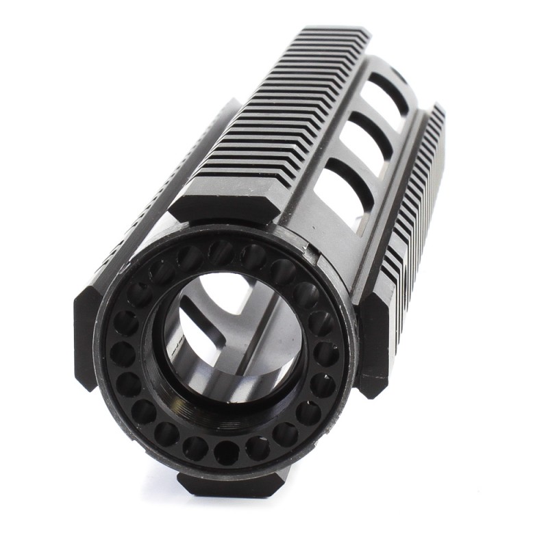 CNC precision machined solid 6061-T6 aluminum with a hard anodized matte black finish, these quality rails give you lots of accessory options. Each has two QD sling swivel ports and with an inner diameter of 1.835", they can accommodate almost any low-profile gas block on the market.