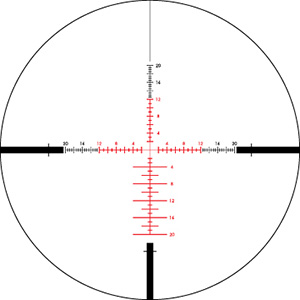| Built-In Accuracy Features | Matching (MRAD or MOA) turrets and reticles facilitate fast and accurate shooting at extended ranges. The patented fiber optic Radius Bar visually assists tracking turret rotations. US Patent 7,937,879 |